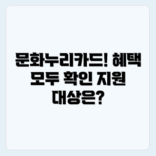 Q: 문화누리카드의 지원 대상은 누구인가요?A: 문화누리카드는 기초생활수급자 및 차상위계층 등 저소득층을 대상으로 지원됩니다. 또한, 6세 이상 24세 이하의 청소년과 65세 이상의 노인도 지원을 받을 수 있습니다.