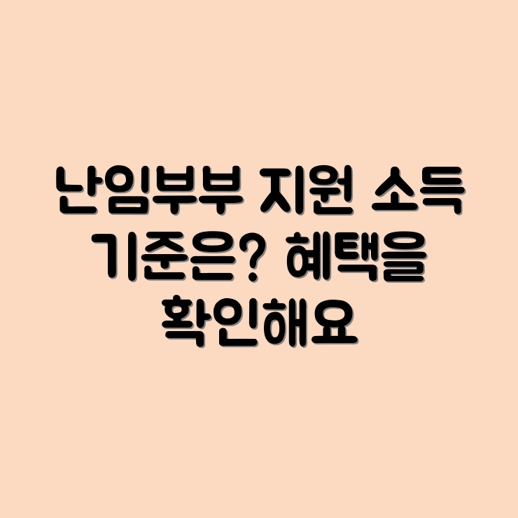 Q: 난임부부 시술비 지원 정책의 소득 기준은 무엇인가요?A: 난임부부 시술비 지원 정책의 소득 기준은 가구당 연소득이 일정 금액 이하일 때 적용됩니다. 현재 기준은 1인 가구 기준 5천만 원, 2인 가구 기준 8천만 원 등으로 다양하니, 자세한 사항은 지역 보건소나 관련 기관을 통해 확인하는 것이 좋습니다.