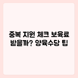 Q: 중복 지원을 받기 위한 조건은 무엇인가요?A: 중복 지원을 받기 위해서는 보육료와 양육수당 모두 해당 기준에 부합해야 합니다. 소득, 가구원 수 등 각 지원금의 자격 요건을 정확히 살펴보아야 합니다.